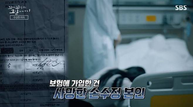 보험금 청구가 거절된 것도 아니고, 아직 심사중인데 이 난리라는 거야. 이 보험의 가입자, 누굴까? 바로 가족도 없이 쓸쓸하게 죽음을 맞았던, 그 손수정 씨야. 손수정 씨에게는 어머니를 수익자로 가입한 보험이 있었어. 사망보험금은 2억 5천만원. 사망 당시 병원에도 안 나타났던 가족이, 갑자기 사망보험금을 빨리 달라고 독촉하며 나타난 거야.