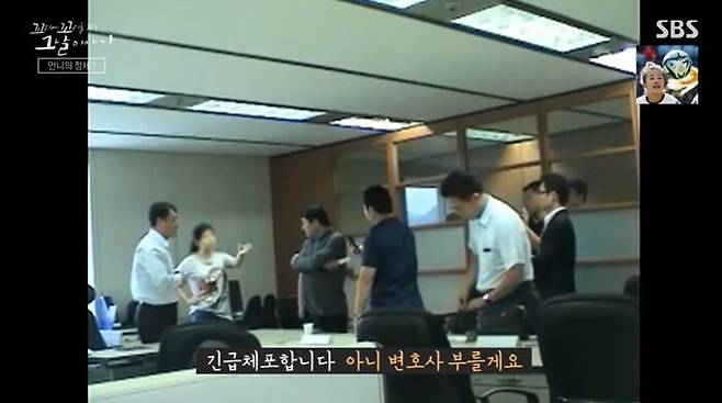 일단, '언니'라는 여자의 정체부터 밝혀야지. 2010년 9월 11일, 보험회사 사무실에 박근우 팀장과 여성 두 명이 앉아있어. 사망 보험금 수익자인 손수정 씨의 어머니, 그리고 독촉전화를 해온 수정 씨 언니였어. 그 언니의 사진을 보여줄게.