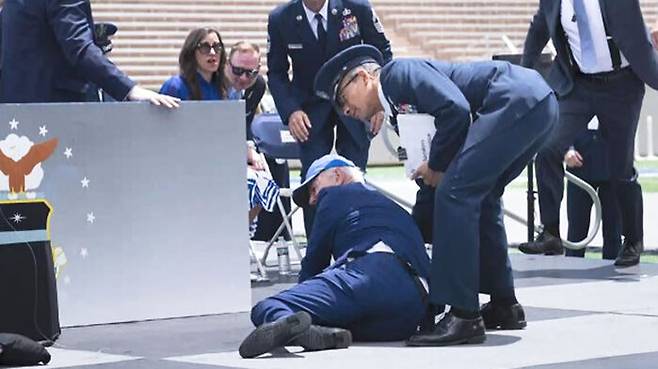 앞서 지난해 6월에는 델라웨어주 개인 별장 근처 공원에서 자전거를 타다 멈추려던 순간 페달 클립에 발이 걸려 넘어지는가 하면, 2021년 3월에는 대통령 전용기 에어포스원에 탑승하기 위해 계단을 가볍게 뛰듯이 오르다 발을 헛디뎌 넘어지기도 했습니다. 대통령 당선인 신분이던 2020년 11월엔 반려견 메이저와 놀아주다 미끄러져 오른쪽 발목에 실금이 갔고, 한동안 절뚝이는 모습을 보였습니다.