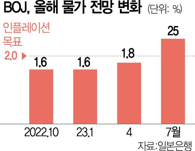 소비자물가지수(CPI) 상승률은 지난해 4월 이후 2%를 웃돌고 있다. 지난달에도 CPI는 전년 동월 대비 3.3% 올랐다. BOJ 측은 우크라이나 전쟁 등에 따른 수입물가 상승이 원인이기 때문에 지속적인 인플레이션과는 거리가 멀다고 설명했지만 이를 그대로 받아들이는 시장 참여자는 많지 않다. BOJ도 올해 CPI 전망치를 기존 1.8%에서 2.5%로 크게 상향 조정했다. 2024년과 2025년 전망치는 각각 1.9%, 1.6%였지만 적어도 현 시점에서 수치상으로는 인플레이션 목표치를 달성했다는 분석이 가능하다. 여기에 올 1분기 국내총생산(GDP) 성장률이 세계 경제 둔화 우려에도 불구하고 2.7%로 선방하는 등 긍정적인 경제지표들이 나오면서 분위기를 띄웠다.