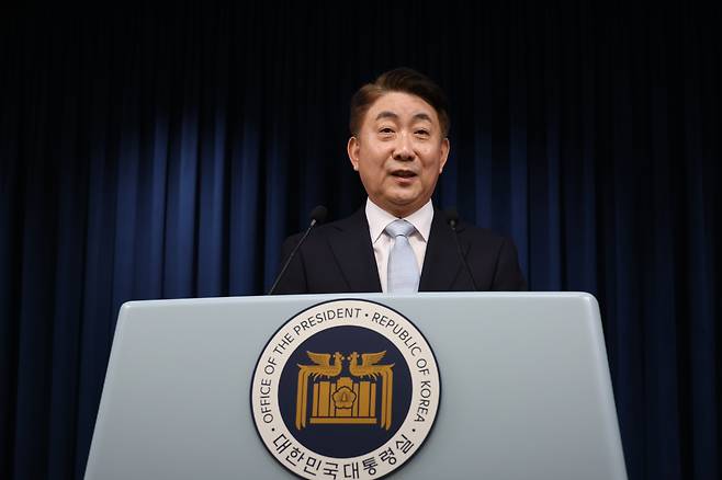 | ▲ 방송통신위원장 후보로 지명된 이동관 대통령 대외협력특보가 28일 서울 용산 대통령실 청사 브리핑룸에서 인사말을 하고 있다. |
