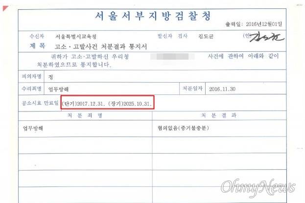 관련해 <오마이뉴스> 취재를 종합하면, 이 과정에서 서울시교육청은 검찰 측에 정확한 공소시효를 확인하지 않았다.