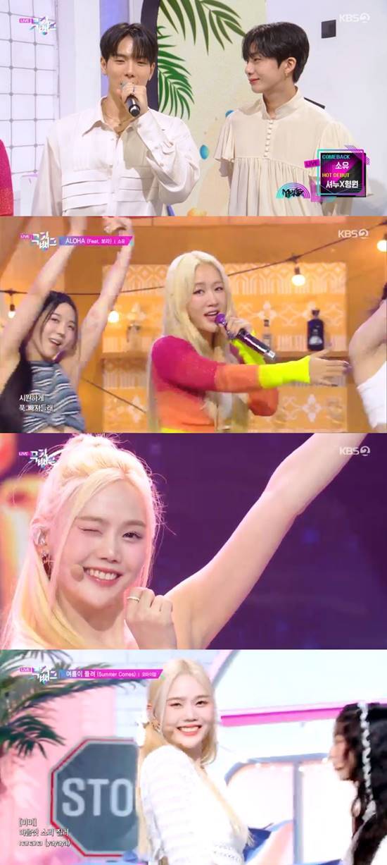 '써머 퀸'으로 돌아온 소유의 솔로 무대도 이어졌다. '알로하(ALOHA)' 무대를 펼친 소유는 중독성이 강한 후렴구와, 제목 '알로하'를 떠올리게 하는 귀여운 포인트 안무로 무더위를 날려줬다.