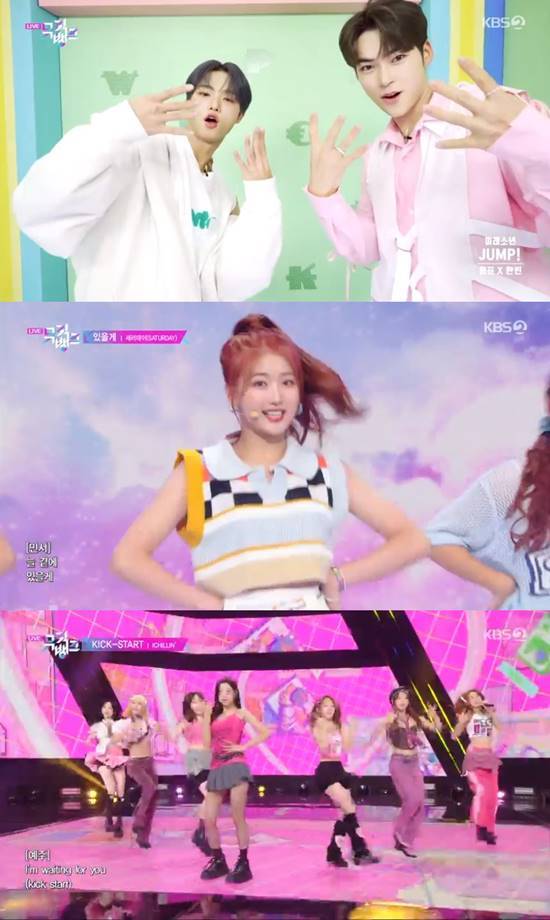 이날 세러데이, 아일리원 등 여자 아이돌들의 무대가 다수 이어졌다. 먼저 세러데이는 '있을게'로 상큼함과 풋풋함이 가득한 무대를 선보였다. 아이칠린은 하이틴의 사랑스러움에 키치함을 더한 화려한 무대로 눈길을 사로잡았다.