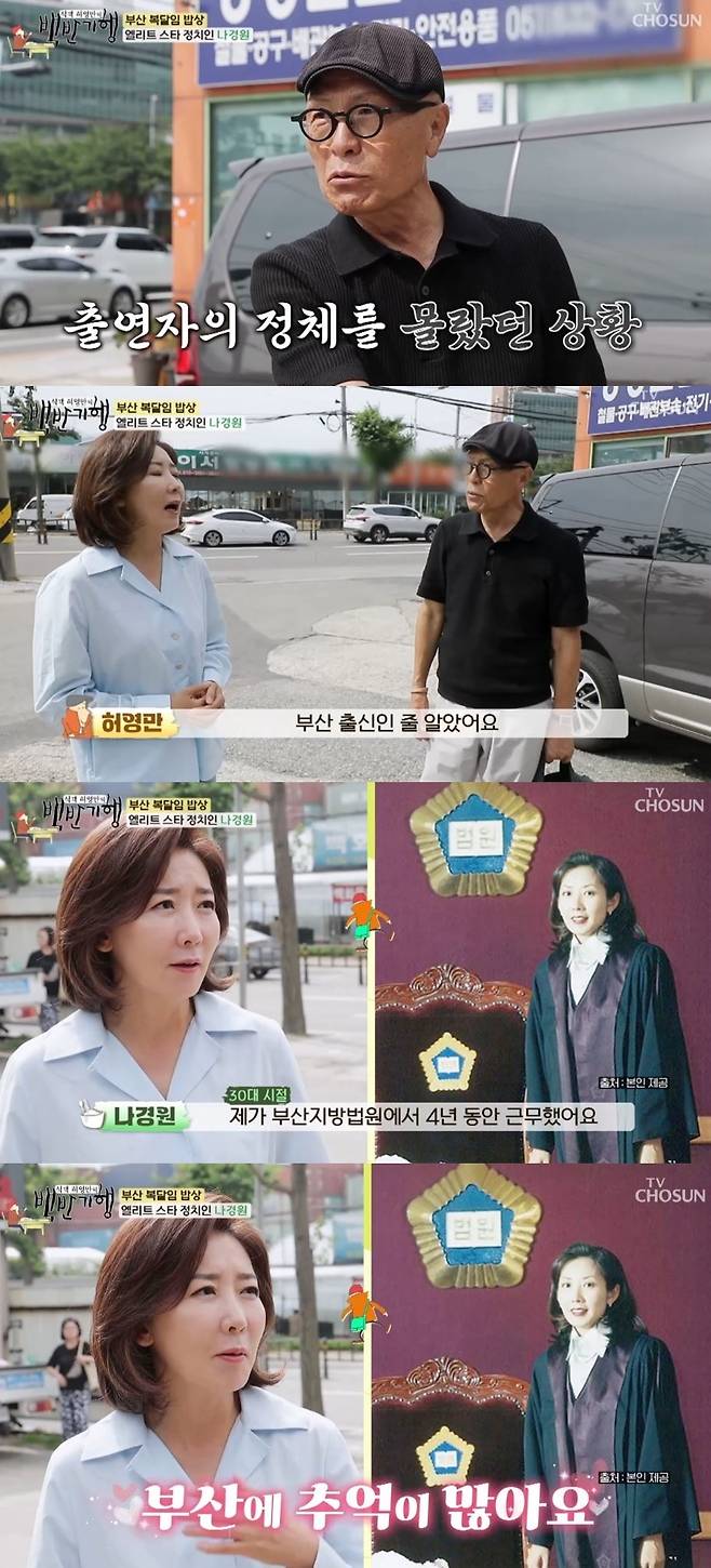이에 나경원은 "제가 부산지방법원에서 4년 동안 근무했어요. 부산하면 추억이 많아요"라고 했다. 방송에는 30대 초반, 1995년부터 부산지방법원에서 일했던 과거 나경원의 모습이 등장해 시선을 끌었다.
