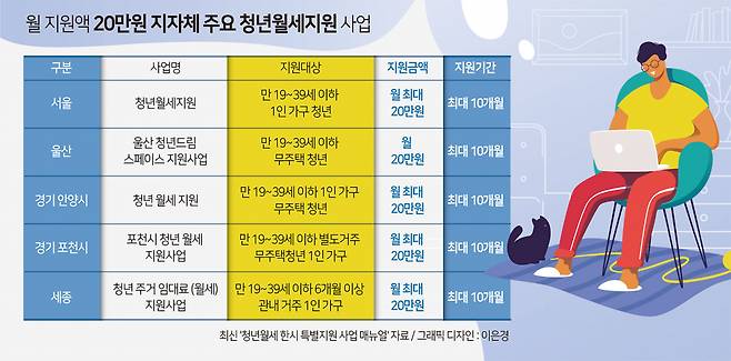 이 사업은 일정 소득 이하 청년이 지자체에 월세 지원을 신청하면 지자체가 요건을 검증해 최대 12개월간, 최대 20만원을 지원하는 내용이다.