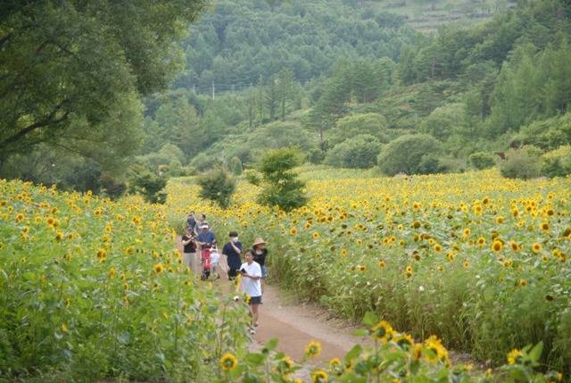 ◆강원 태백 해바라기 축제=노란빛 해바라기 바다에 풍덩 빠져보는 건 어떨까. 작은 시골 마을인 태백시 황지동 구와우마을에선 매년 여름 해바라기 축제를 연다. 구와우마을은 오래전부터 해바라기를 심어 지금은 100만송이가 피어나는 우리나라 대표 해바라기 명소다. 구와우마을은 산간지역이라 안개가 자주 끼는데 이때 바라보는 해바라기도 매력 있다. 해바라기 군락 속에서 그림이나 조각 전시도 하고 거리공연도 열려 즐길 거리가 많다. 또 산양 먹이 주기 체험과 태백숲체험협동조합에서 진행하는 숲 해설 프로그램에 참여할 수 있다. 태백 해바라기 기름이나 각종 해바라기 액세서리를 사는 재미도 있으니 놓치지 말길. 8월15일까지. 입장료는 성인 기준 5000원.