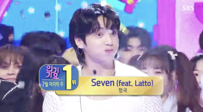 30일 오후 방송된 SBS '인기가요'에서는 정국, NCT DREAM, 뉴진스가 마지막주 1위 후보로 선정된 가운데, 정국의 'Seven (feat. Latto)'가 1위에 올랐다.