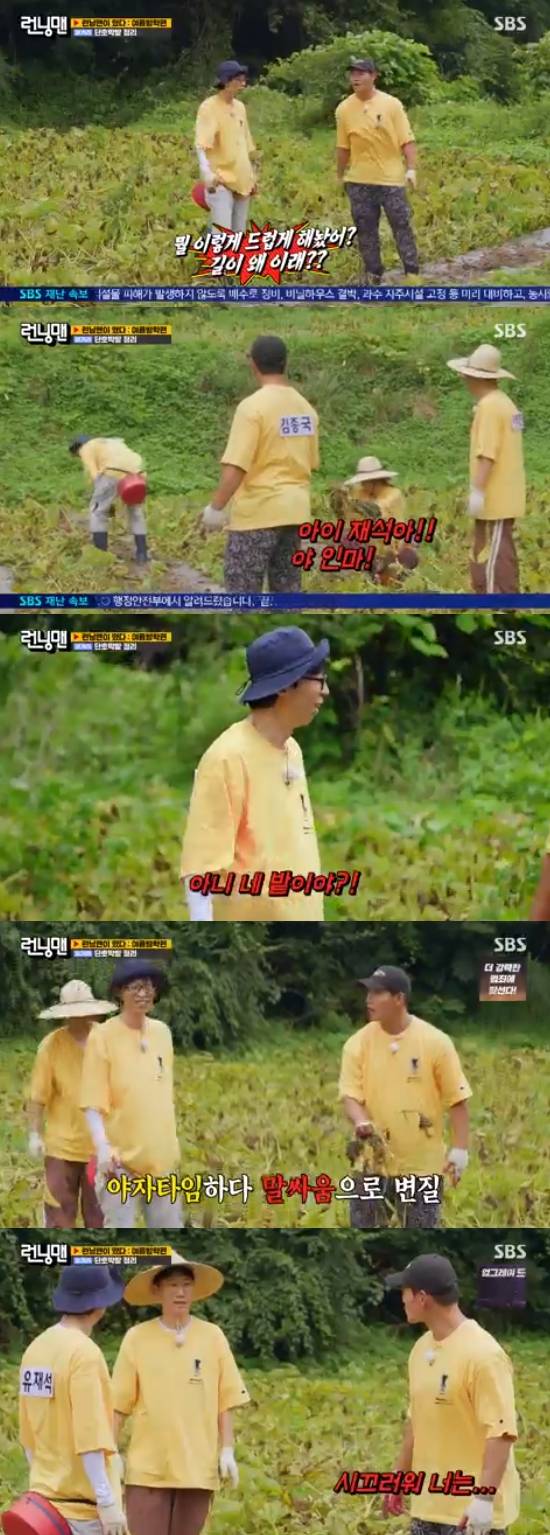 또 김종국은 유재석에게 "제대로 뽑지도 않고 이거 뭐하는거야! 재석야! 야 인마!"라고 호통을 쳤고, 유재석은 "인마라니! 여기가 네 밭이야? 이 자식이"라면서 발끈했다.
