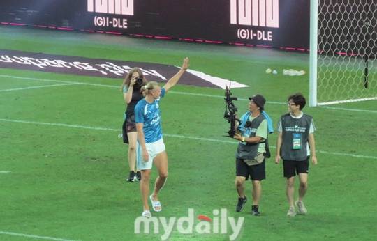경기 종료 휘슬이 울린 뒤에는 혼자서 경기장을 한바퀴 돌았다. 서울월드컵경기장을 찾은 64,185명 관중들에게 손을 흔들어 인사했다. 그리곤 S석 관중석으로 달려갔다. LED 전광판을 가볍게 뛰어넘은 홀란드는 손에 들고 있던 유니폼을 한 팬에게 던져줬다.