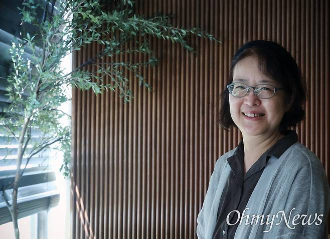 | ▲ 일본 시인 가와즈 기요에씨가 28일 오전 서울 종로구 한 호텔 라운지에서 <오마이뉴스>와 만나 정전협정 70주년을 맞아 파주 임진각 망배단에서 열린 '세계 예술인 한반도 평화선언'에 참가한 이유와 후쿠시마 오염수 방류 문제에 대해 이야기를 나눴다. |