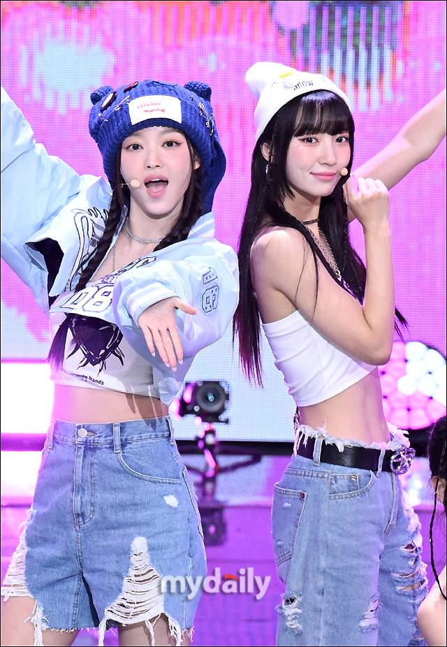[마이데일리 = 송일섭 기자] 오마이걸 유아와 유빈이 1일 오후 서울 상암동 SBS 프리즘타워에서 열린 SBS M '더쇼' 생방송에서 열정적인 무대를 선보이고 있다.