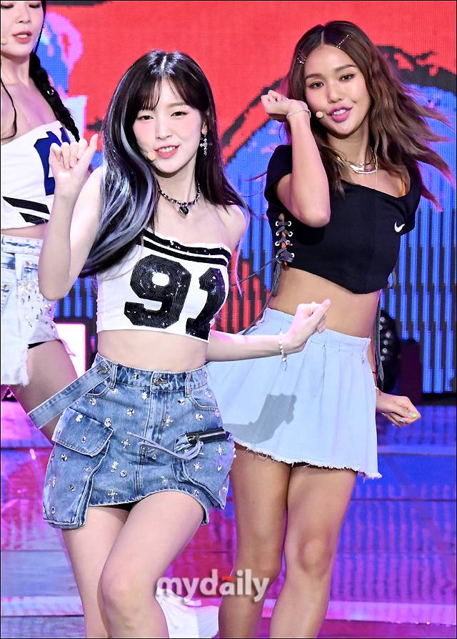 [마이데일리 = 송일섭 기자] 오마이걸 아린과 미미가 1일 오후 서울 상암동 SBS 프리즘타워에서 열린 SBS M '더쇼' 생방송에서 열정적인 무대를 선보이고 있다.