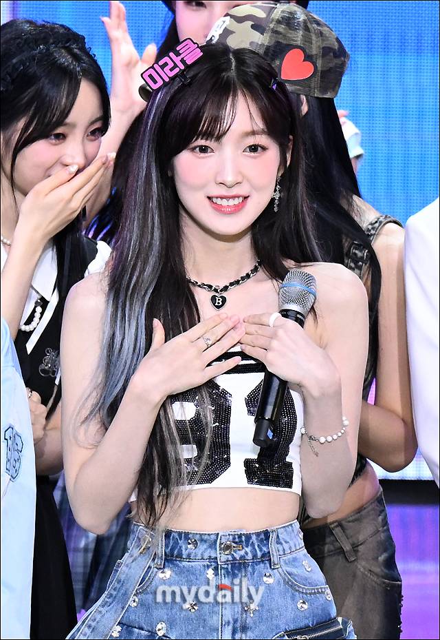 [마이데일리 = 송일섭 기자] 오마이걸 아린이 1일 오후 서울 상암동 SBS 프리즘타워에서 열린 SBS M '더쇼' 생방송에서 재미있는 모습을 선보이고 있다.
