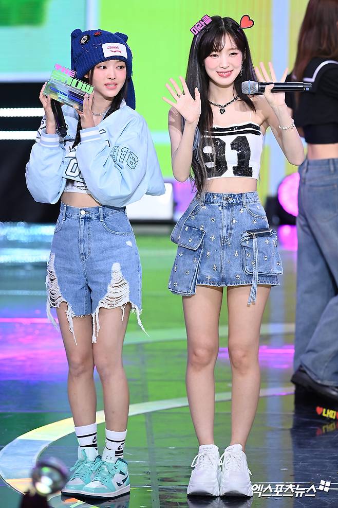 이날 더쇼에 참석해 더쇼 초이스 1위 수상한 오마이걸 유아, 아린이 앵콜 무대를 선보이고 있다.