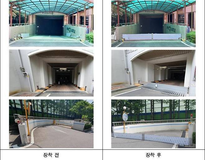 시는 필요시 빗물 유입 방지 효과를 높이기 위해 주차장 출입구에 방지턱과 빗물 드레인(배수관)도 함께 설치하는 방안을 검토할 계획입니다.