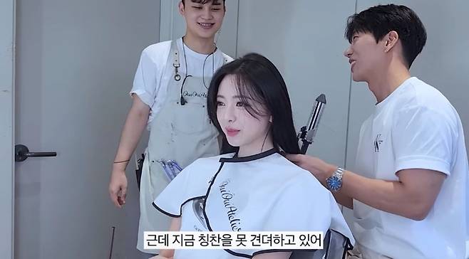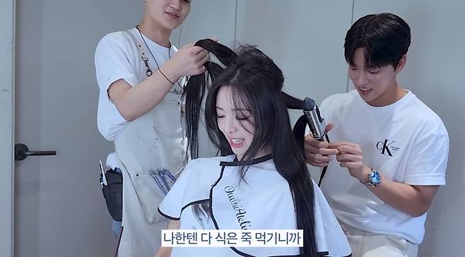 안무 영상 촬영에 앞서 헤어 세팅을 받고자 스튜디오를 찾은 유나는 “이번에 프로모션 촬영차 하고 싶은 게 있느냐고 하기에 내가 먼저 ‘기우쌤’을 얘기했다. 망한 머리 콘텐츠를 자주 본다”며 팬심을 전했다.