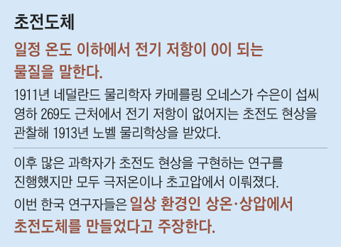1911년 네덜란드 물리학자 헤이커 카메를링 오너스는 영하 269도에서 수은의 전기저항이 극도로 낮아지는 초전도 현상을 처음으로 발견했다. 그는 이 연구로 노벨 물리학상을 받았다. 이후로 물리학자들은 초전도 현상이 일어나는 온도를 점차 높여왔고 해당 물질이나 현상이 발견될 때마다 노벨상이 수여됐지만 극저온이나 초고압을 극복하지는 못했다. 상온 초전도체를 개발했다는 학자도 많았지만 모두 거짓이었다. 최근에는 2020년 미국 로체스터대 랑가 디아스 교수가 네이처에 영상 15도에서 초전도성을 보이는 물질을 만들었다고 발표했지만 데이터가 조작된 것으로 확인됐다.