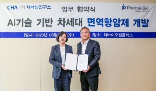 차바이오텍 계열사 차백신연구소는 인공지능(AI) 신약 개발 전문기업 파로스아이바이오와 'AI 기술을 활용한 차세대 면역항암제 발굴을 위한 상호협력 업무협약'을 체결했다고 3일 밝혔다.