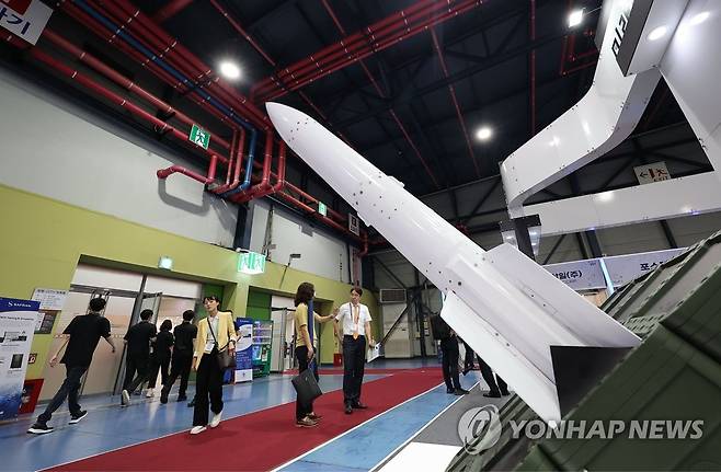 (서울=연합뉴스) 류영석 기자 = 3일 오후 서울 강남구 SETEC에서 열린 제7회 국방과학기술 대제전을 찾은 시민 및 군 관계자들이 전시품을 둘러보고 있다. 2023.8.3
