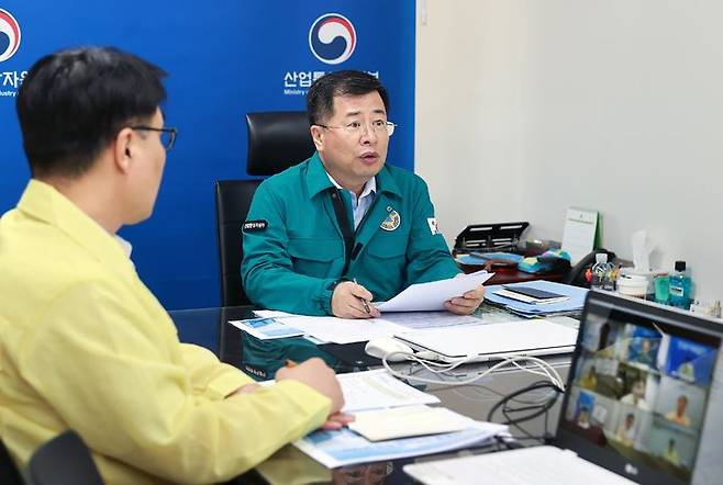 [서울=뉴시스] 강경성 산업통상자원부 2차관이 3일 서울 종로구 정부서울청사에서 여름철 피크대비 전력수급 준비상황 점검회의를 주재하고 있다. (사진=산업통상자원부 제공) 2023.08.03. photo@newsis.com *재판매 및 DB 금지