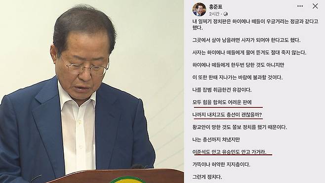 중징계받은 홍준표가 남긴 페이스북