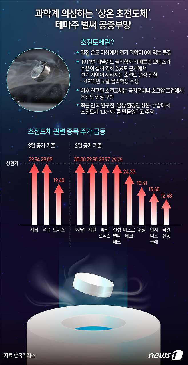 [오늘의 그래픽] 과학계 의심하는 '상온 초전도체'…테마주 벌써 공중부양