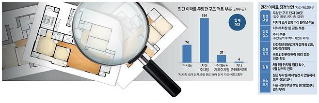 한국토지주택공사(LH)의 무량판 구조 부실시공 사태 후속조치로 3일 국토교통부가 25만가구에 해당하는 전국 293개 단지를 두 달 만에 전수조사한다는 계획을 꺼내들었다. 이르면 다음주부터 대상 단지가 입주민들에게 통보될 예정이다. LH와 같은 철근 누락이 민간 아파트에서도 발견될 시 큰 혼란이 예상된다.
