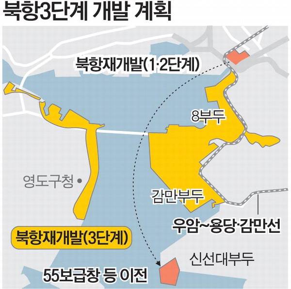 3일 부산시는 2030부산세계박람회(월드엑스포) 개최 예정지인 북항 인근 55 보급창(동구)과 8부두(남구) 이전 계획을 발표하면서 8부두 주변 북항 3단계 재개발 사업 청사진을 함께 공개했다.