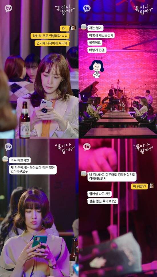 박하선은 카카오TV 웹예능 '톡이나 할까?'에서 "애 낳기 전엔 일이 이렇게 재밌는지 몰랐다. 제 기준에 육아가 제일 힘든 거 같다"라며 열애설 이후 2년, 결혼과 임신·육아로 2년 경력단절을 겪었다고 밝혔다.