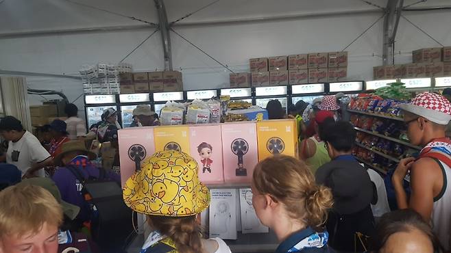 3일 낮 전북 새만금에서 열리고 있는 세계스카우트잼버리대회장 내 편의점에 전 세계에서 온 대회 참가 대원들이 몰려 북새통을 이루고 있었다.