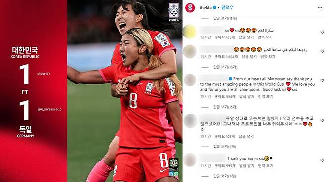 반면 경기 이후 대한축구협회 SNS는 모로코 축구팬들의 감사 인사로 뜨거워지기 시작했습니다.