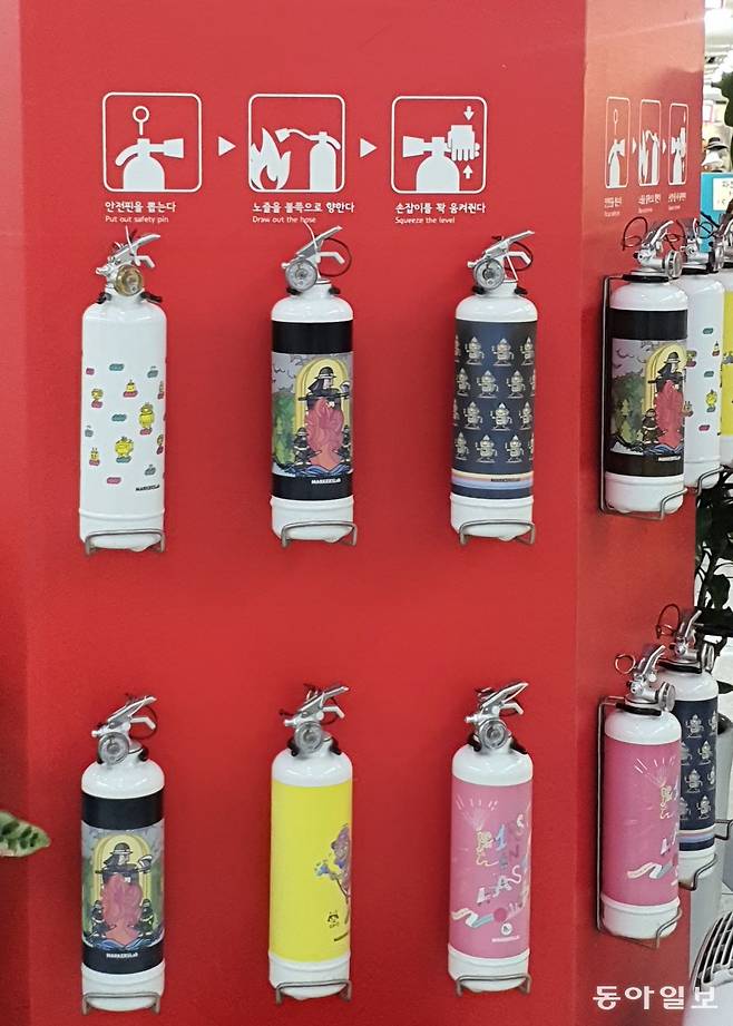 알록달록한 그림으로 포장된 소화기가 지하상가에 비치돼 있습니다. 안전을 지키는 고마운 존재이자 예술품이 됐네요.