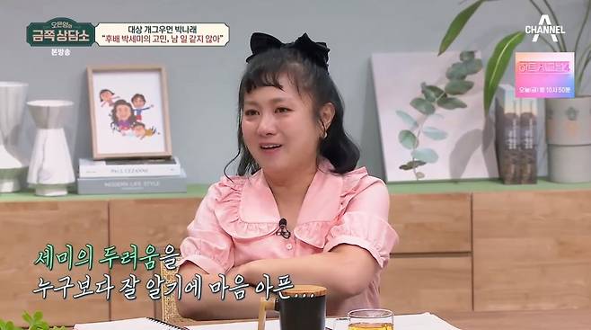 그러면서 박나래는 박세미에게 "쉬는 날 저한테 꼭 연락했으면 좋겠다"며 울컥해 눈물을 흘렸다. (사진=채널A '오은영의 금쪽상담소' 캡처)