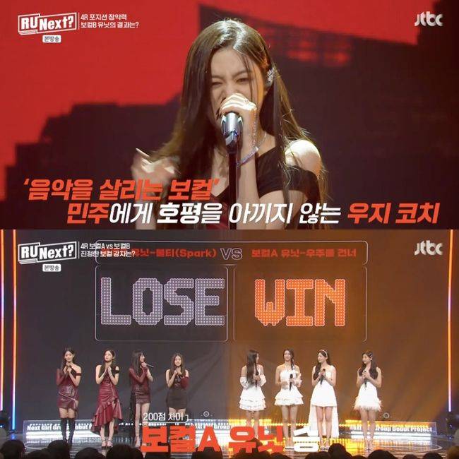 이윽고 보컬 포지션 8인의 개인 점수가 공개되고, B 유닛의 샤넬이 3등, A 유닛의 윤아가 4등을 받았다. 윤아는 “예상했던 점수보다 높았다”라며 만족해했다. 반면 7등을 받은 A 유닛의 원희는 “7등이 나와서 팀 점수를 낮게 만들었나”라며 미안해했다. 과연 승리하는 팀은 어디일까? 보컬B 유닛은 3,105점을 받은 반면, 보컬A 유닛이 3,300점을 받으면서 보컬 대결에서 승리하게 됐다. 이에 예원은 “여기까지 오셨는데 너무 죄송하다”라고 눈물을 흘렸고, 샤넬은 “아쉽지만 베네핏을 받도록 노력하겠다”라고 전했다.
