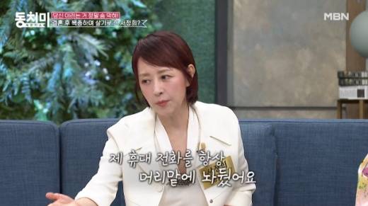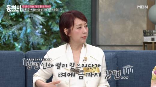 서정희는 "시어머니가 나의 기준이었다. 시어머니는 아들 벨이 울리면 뛰어가다가 갈비뼈가 부러진 적이 있다. 나도 실제로 전화 빨리 받으려다 뼈에 금이 간 적이 있다"며 "남편이 화가 날 일이 없게 하는 것도 중요했다. 매일 밤 남편에게 내 핸드폰을 보라고 줬다. 누구랑 연락했는지 확인하라고"고 말했다.