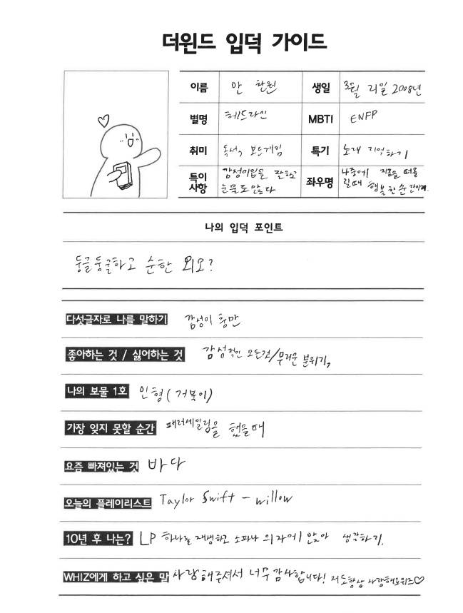 입덕가이드 네 번째 주자는 최한빈입니다.