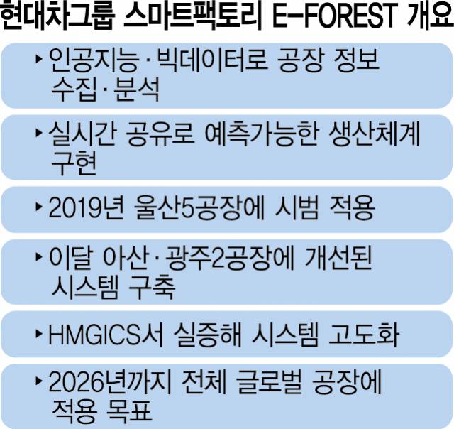 현대차그룹 제조솔루션본부에서 스마트팩토리를 연구하는 이재곤 이포레스트(E-FOREST) 전략팀장은 지난달 25일 서울경제신문과 만나 “스마트팩토리는 이미 제조 현장을 혁신적으로 바꿔 놓고 있다”며 “기존에 관리할 수 없던 영역까지도 들여다볼 수 있어 품질과 생산성을 높이는 효과가 있다”고 설명했다.