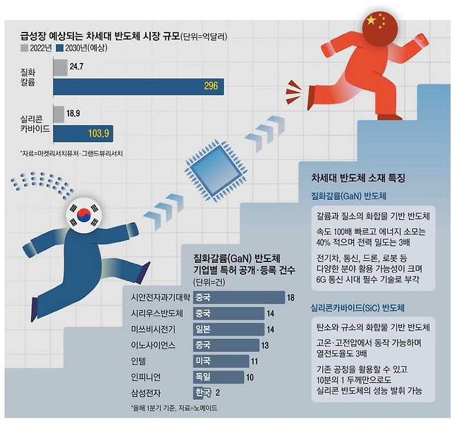 미국·중국·일본·유럽 등 세계 각국이 질화갈륨(GaN)과 실리콘카바이드(SiC) 등 차세대 반도체 기술 개발을 향해 전력 질주에 나서는 것은 차세대 반도체가 곧 미래 안보와도 연관된다는 인식 때문이다.