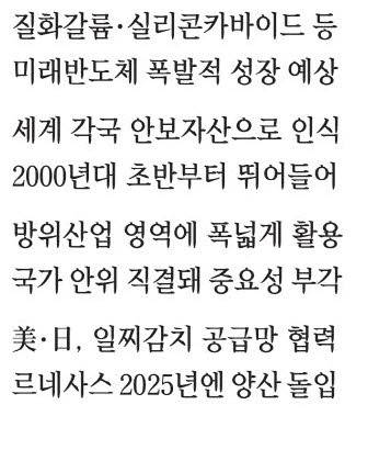 전문가들은 시장 가능성뿐 아니라 이들 반도체가 각종 방위산업과 민간용 레이더, 위성통신에도 쓰인다는 점에 주목하고 있다.