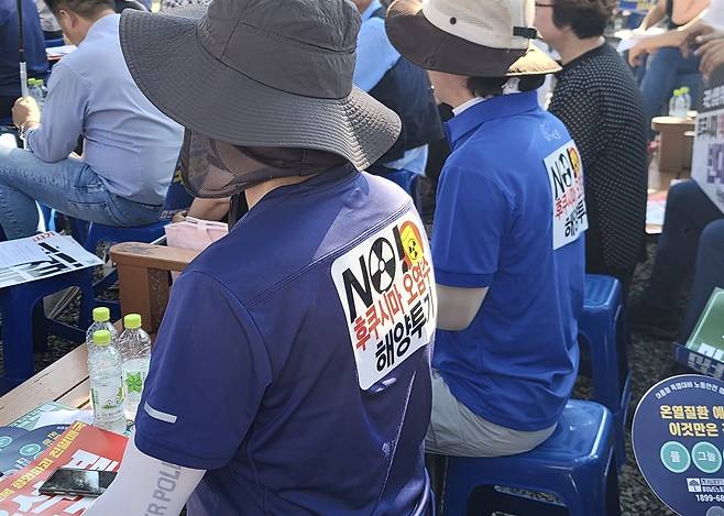 참가자들은 '일본은 해양투기 하지 말고 자국 내 보관하라', '윤석열은 일본 방사능 오염수 해양투기 반대하라' 등의 손팻말을 들고 일본의 핵 오염수 해양 투기 철회를 주장했다.