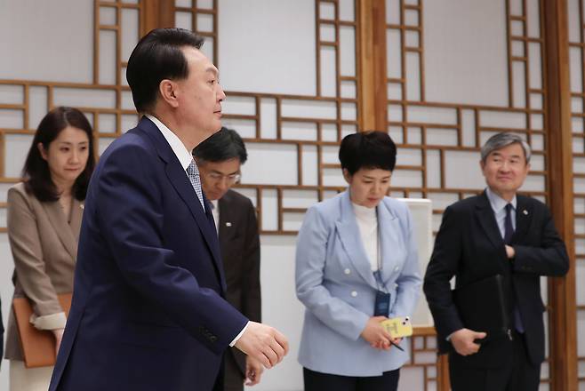 | ▲ 윤석열 대통령이 28일 서울 용산 대통령실 청사에서 열린 김영호 통일부 장관 임명장 수여식에 입장하고 있다. 2023.7.28 |