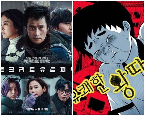 [마이데일리 = 곽명동 기자]엄태화 감독의 ‘콘크리트 유토피아’는 지난 2014년부터 레진코믹스를 통해 연재, 예기치 못한 재난 앞에 변해가는 적나라한 인간의 모습을 그려 호평과 인기를 모았던 김숭늉 작가의 웹툰 '유쾌한 왕따'의 2부 '유쾌한 이웃'을 원작으로 새롭게 각색한 작품이다.