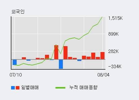 한편 외국인은 이 종목에 대해서 최근 5일 연속 79.2만주 순매수를 하고 있다. 더욱이 전일 외국인이 대량 순매수를 하고 있어 투자자들의 관심이 집중되고 있다.