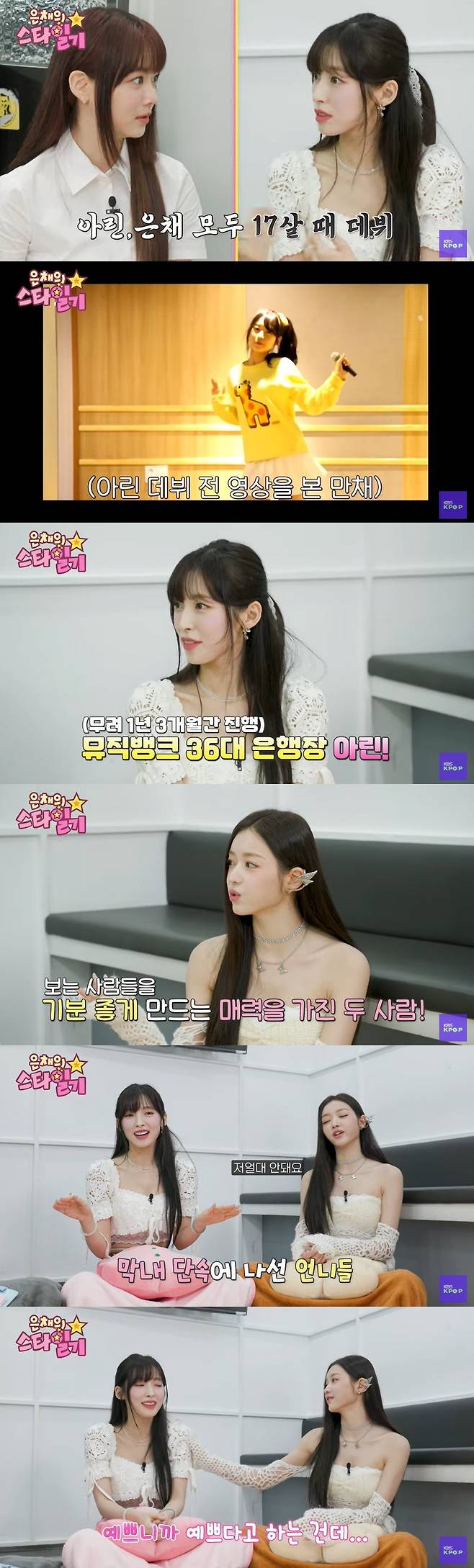 홍은채와 아린은 17살에 데뷔했다는 공통점이 있었다. 홍은채는 "아린 선배님 꼬꼬마 시절 영상을 많이 봤는데 너무 귀엽다. 저는 그래도 성숙하다는 얘기를 듣는다"고 전했다. 이에 아린은 "저도 그때 그 착각 많이 했다"고 받아쳐 홍은채를 민망케 했다.