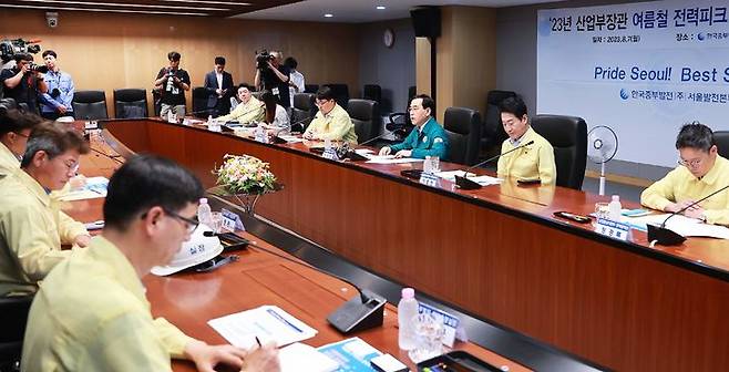 [서울=뉴시스] 이창양 산업통상자원부 장관이 7일 서울 마포구 중부발전 서울발전본부를 방문해 전력수요 피크 대비 준비상황을 점검하고 있다. (사진=산업통상자원부 제공) 2023.08.07. photo@newsis.com