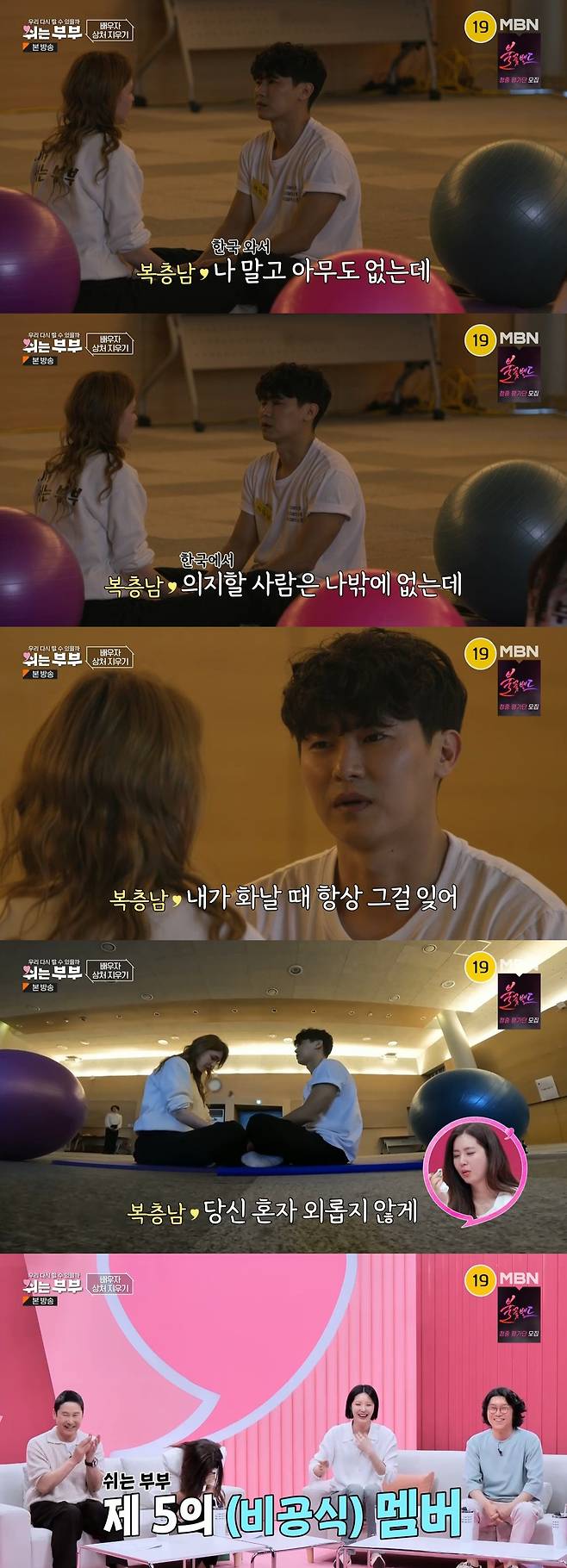 7일 방송된 MBN '쉬는 부부'에서는 서로의 얼굴을 한참이나 바라보며 끝내 뜨거운 눈물을 쏟는 '쉬는 부부'들의 모습이 전파를 탔다.