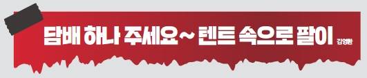 평소 담배를 즐기지 않지만(안 피우거나 하루 1~2개) 유독 그날은 담배가 있었다. 군인들의 노고를 알고 측은한 맘에 담배를 주려고 "드리겠습니다"라고 했다. 그 말이 떨어지기 무섭게 갑자기 텐트 안으로 팔이 쑥 들어온다. 이어서 "나도, 나도"하며 연달아 여러 개의 손들이 들어 온다. 텐트는 찢어지지 않고 손들이 들어와 춤을 춘다.