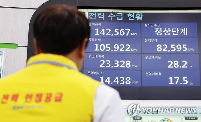 (의왕=연합뉴스) 홍기원 기자 = 8일 오전 경기도 의왕시 전력거래소 경인지사에서 관계자가 전력수급상황을 주시하고 있다. 2023.8.8