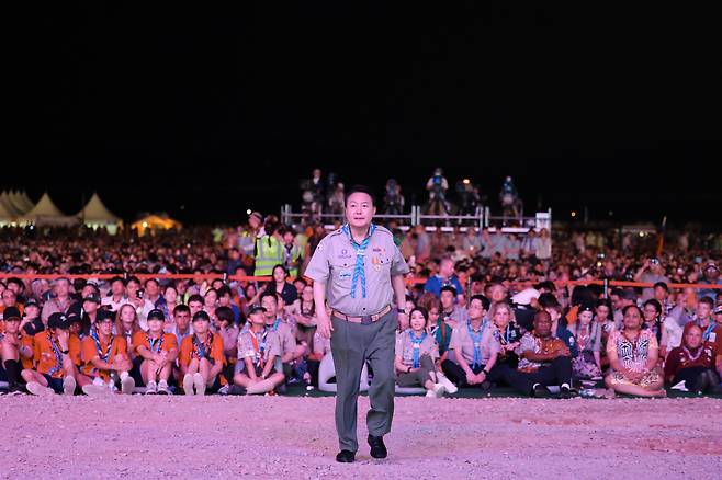 | ▲ '2023 새만금 제25회 세계스카우트잼버리' 개영식에 참석한 윤석열 대통령이 환영사를 하기 위해 나가고 있다. 2023.8.3 |